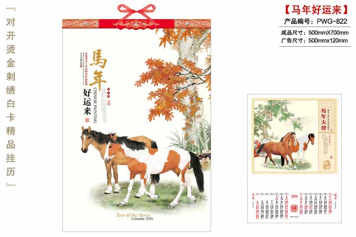 本厂有着一流的印刷设备,根据市场变化不断地对产品进行更新换代,2026年共推出皱油水晶七彩工艺卡纸挂历、小对开铜版卡纸挂历、环保新款大花边卡纸挂历系列等共计200多个产品,从小号便签精品周历到大班商务新概念周历,从国际时尚特大四开卡纸挂历到欧版横翻铜版卡纸吊历,产品涵盖高中低档,价格从2-3元到十几元不等,满足不同层次不同领域的客户需求。我们希望以优秀的技术、热情的服务和有保障的产品质量,能让您选择"我们"信赖"我们",让我们成为您更安全、更方便、更快捷、更放心的合作伙伴从而共创双赢的合作未来!